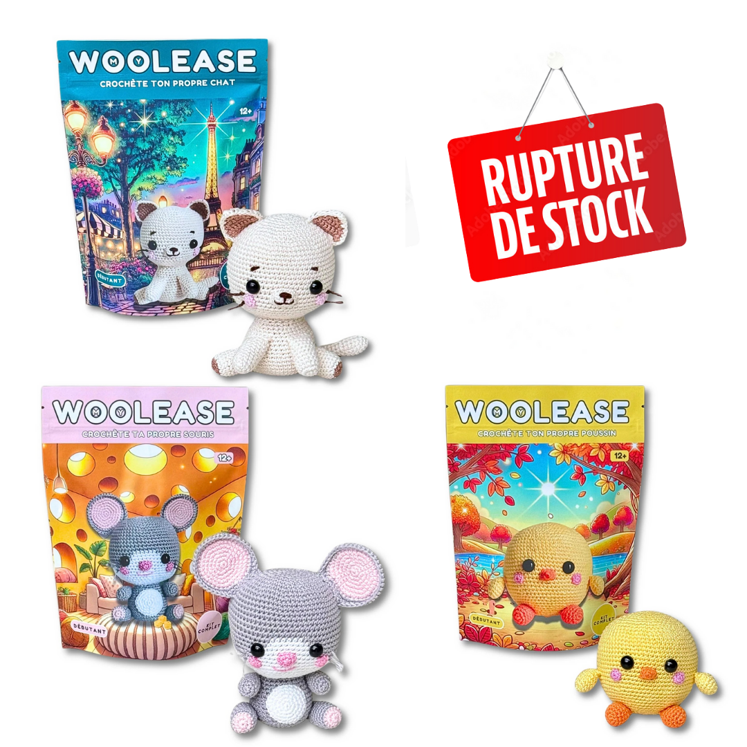 Plongez dans un monde de créativité et de douceur avec Taïga le chat curieux , Piou Piou le poussin joyeux , et Sophie la souris coquine . Ces trois adorables personnages n'attendent que vos mains pour prendre vie, ajoutant une touche d'amour et d'espièglerie à votre quotidien.